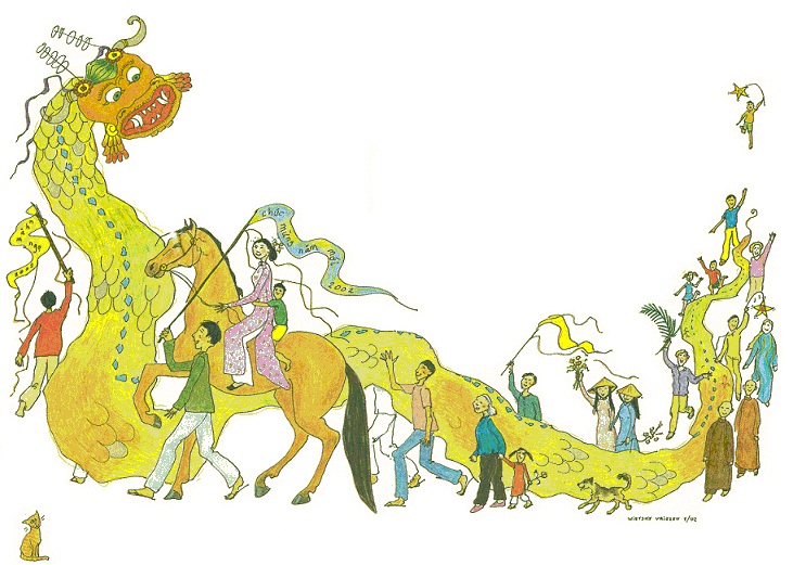 Examples of illustrations for “A Basket of Plums”, Plum Village songbook published by Parallax Press: